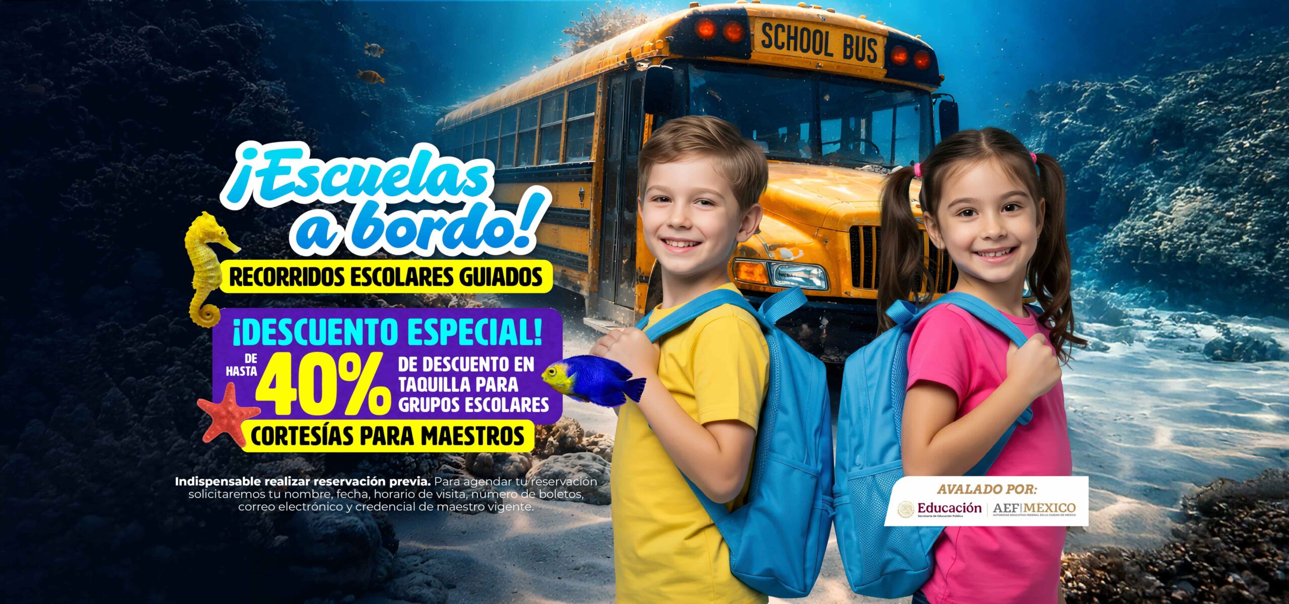 Nuestras instalaciones de vanguardia y con lo mejor de la tecnología ofrecen un emocionante viaje educativo; el cual estará repleto de recursos y herramientas que les brindarán la oportunidad de explorar y aprender mucho más sobre de la vida marina. Además, proporcionamos materiales didácticos que cumplen con los objetivos educativos de la SEP, permitiendo realizar prácticas relacionadas con la vida acuática, la conservación y la reproducción de especies.