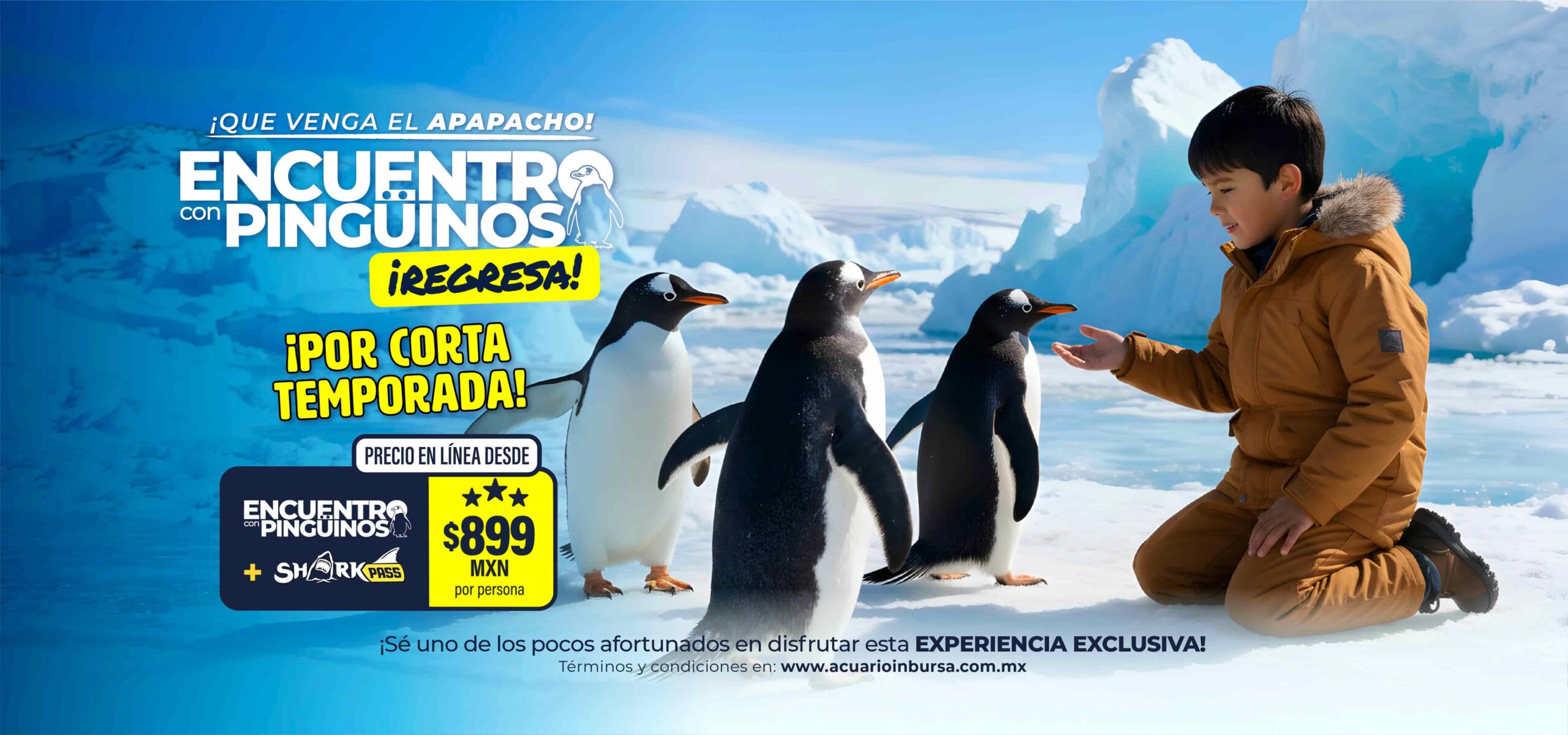 - Shark Pass + Pingüinos: $899 por persona comprando en línea con un día de anticipación.